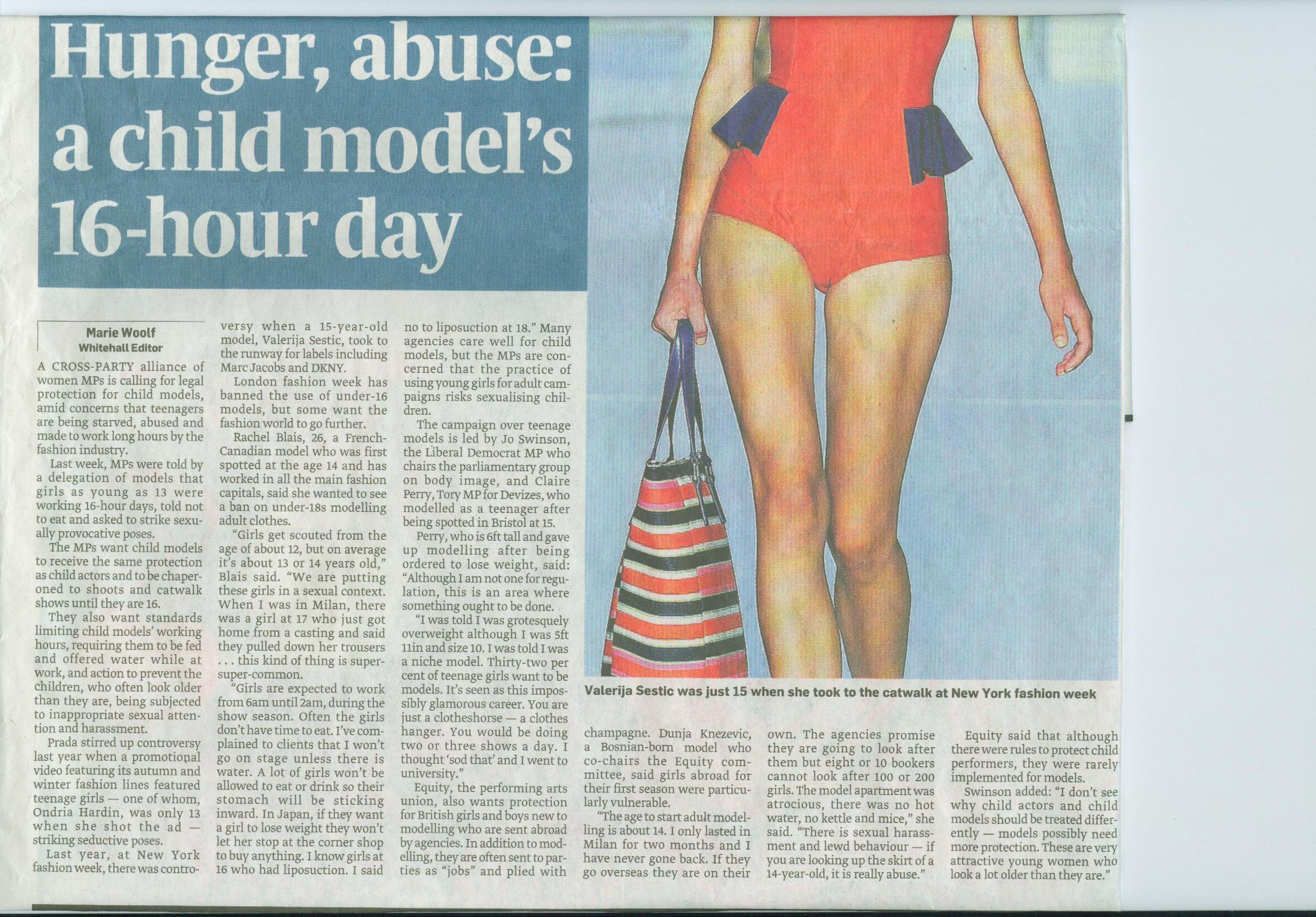 Sunday Times 12.2.12 - Hunger, abuse: a child model's 16-hour day